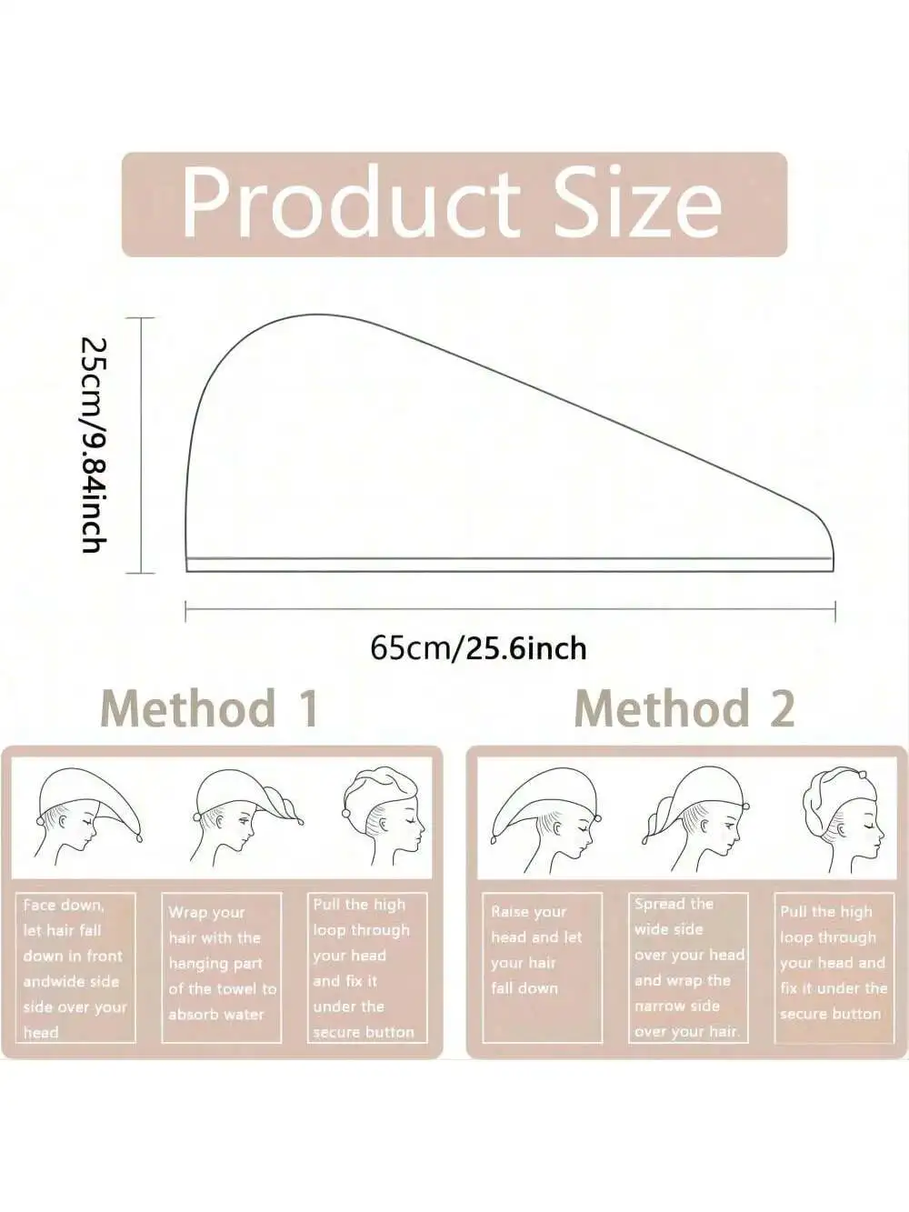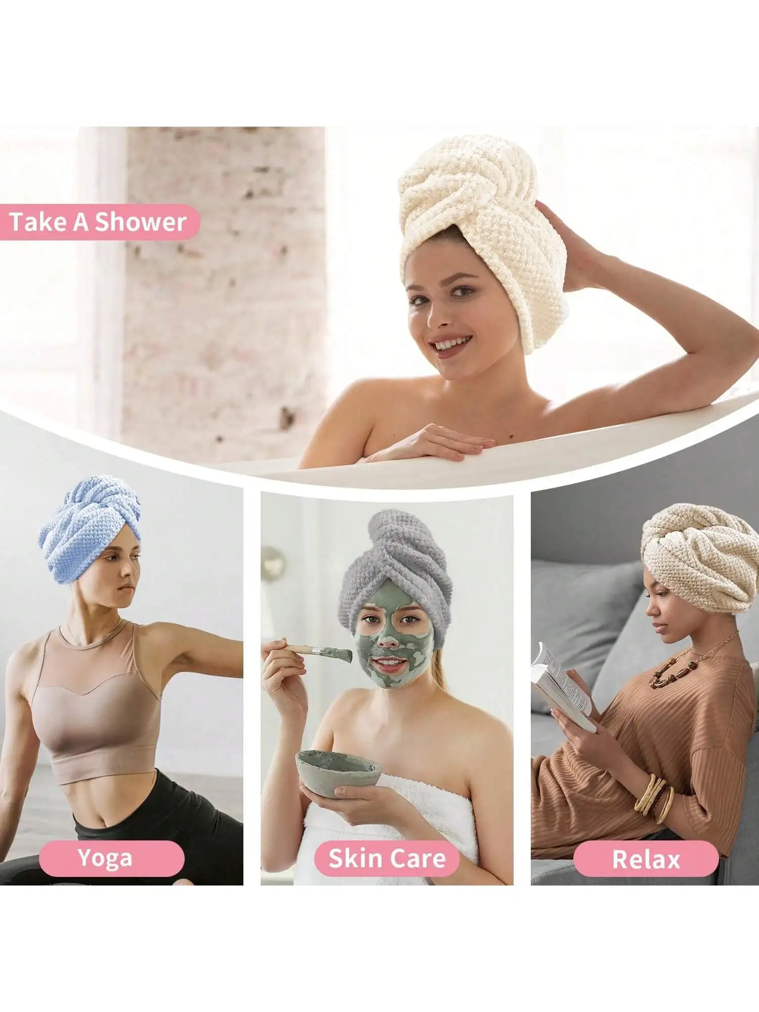 Solid color hair towel Textured dry hair cap 9.8 "X 25.5" absorbent hair towel wrap for button-down women